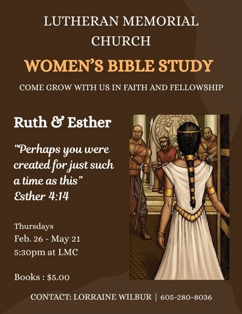 The first 5 weeks are on Ruth. There will be a break during Holy Week. The following 6 weeks are Esther with one final wrap up session covering both books of the Bible. Feel free to attend just the Ruth or Just the Esther study if you aren’t able to do both.